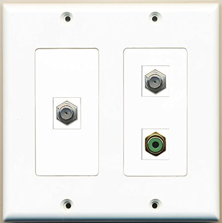 RiteAV - 1 Port RCA Green 2 Port Coax Cable TV- F-Type - 2 Gang Wall Plate