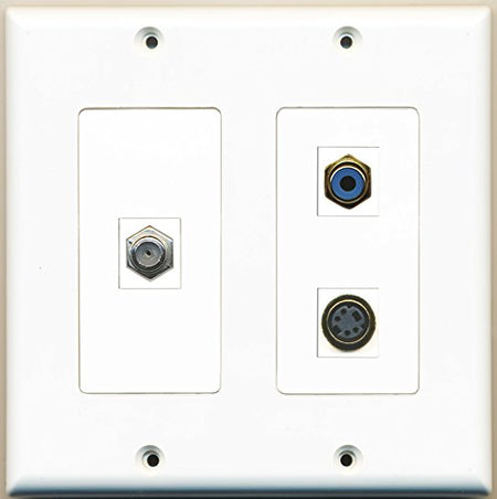 RiteAV - 1 Port RCA Blue 1 Port Coax Cable TV- F-Type 1 Port S-Video - 2 Gang Wall Plate