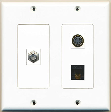 RiteAV - 1 Port Coax Cable TV- F-Type 1 Port S-Video 1 Port Cat6 Ethernet Black - 2 Gang Wall Plate