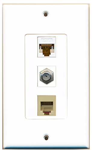RiteAV 1 Port Coax Cable TV- F-Type 1 Port Phone RJ11 RJ12 Beige 1 Port Cat6 Ethernet White Wall Plate OVERSIZED