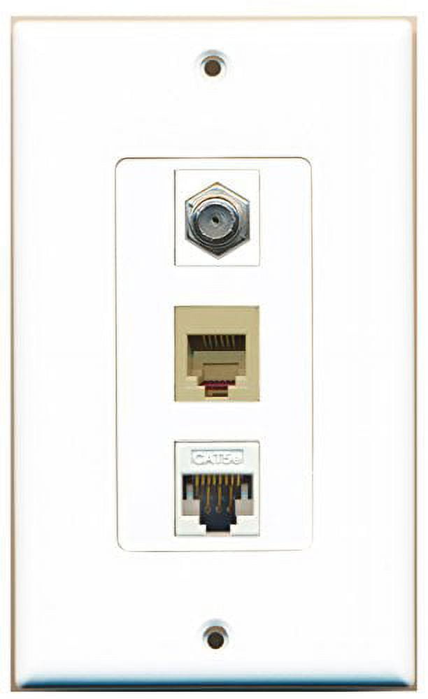 RiteAV 1 Port Coax Cable TV- F-Type Phone RJ11 RJ12 1 Port Cat5e Ethernet Wall Plate Oversized White