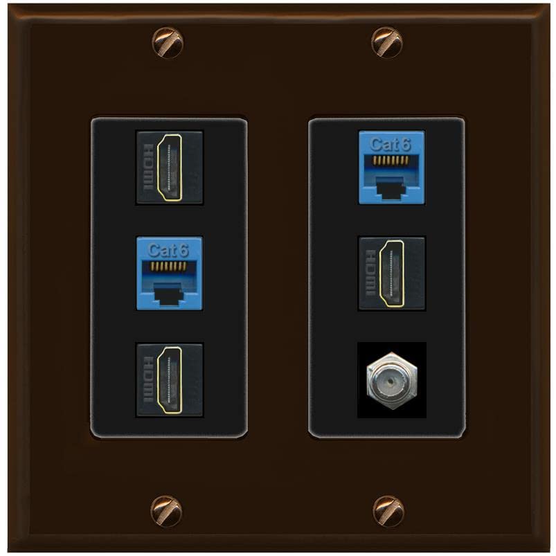 RiteAV 3 HDMI Wall Plate 2 Cat6 1 Coax - 2 Gang [Brown/Black]