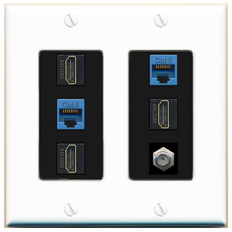 RiteAV 3 HDMI Wall Plate 2 Cat6 1 Coax - 2 Gang [White/Black]