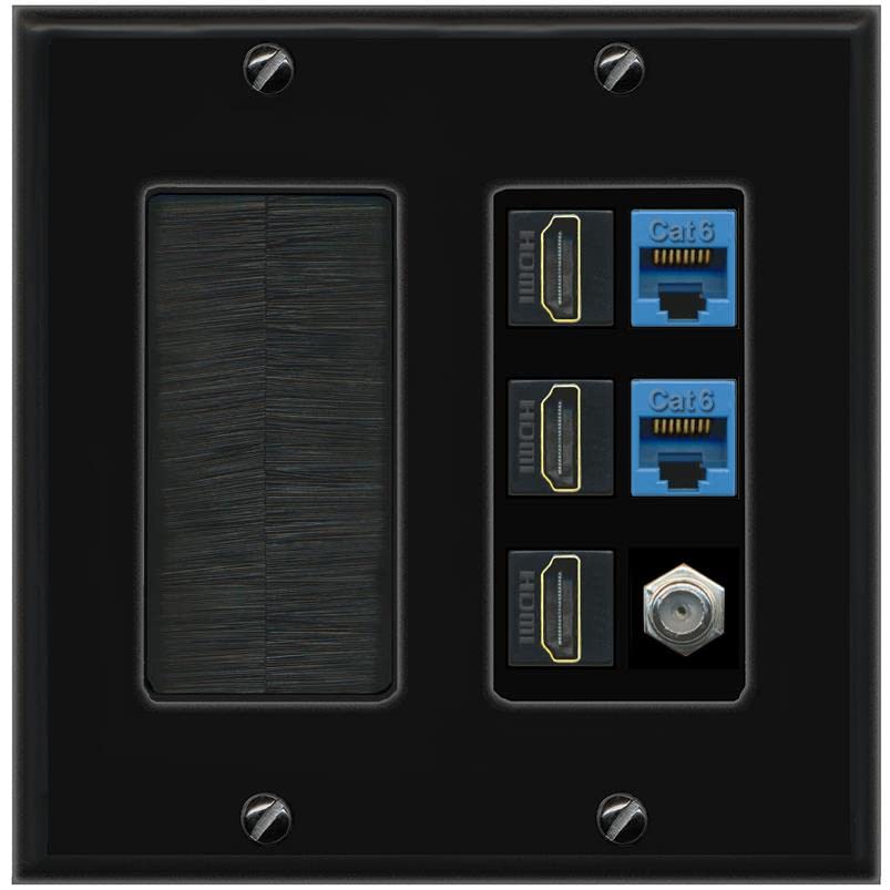 RiteAV 3 HDMI Wall Plate 2 Cat6 1 Coax - Brush [Black/Black]