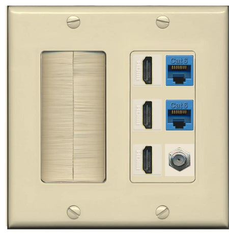 RiteAV 3 HDMI Wall Plate 2 Cat6 1 Coax - Brush [Ivory/Ivory]