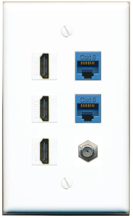 RiteAV 3 HDMI Wall Plate 2 Cat6 1 Coax - Flat [White/White]