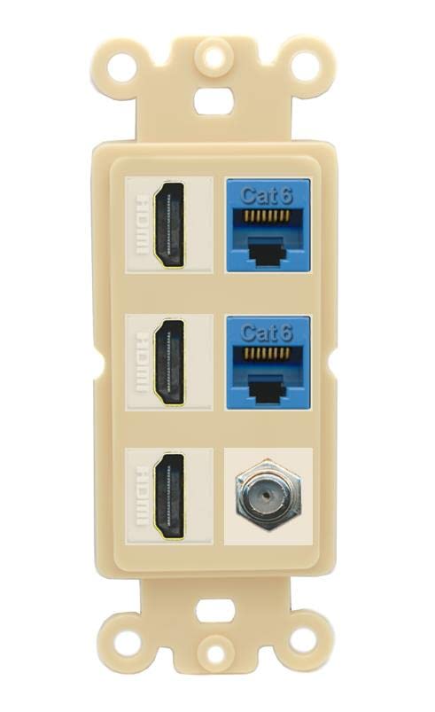 RiteAV 3 HDMI Wall Plate 2 Cat6 1 Coax - Rocker [Ivory/Ivory]