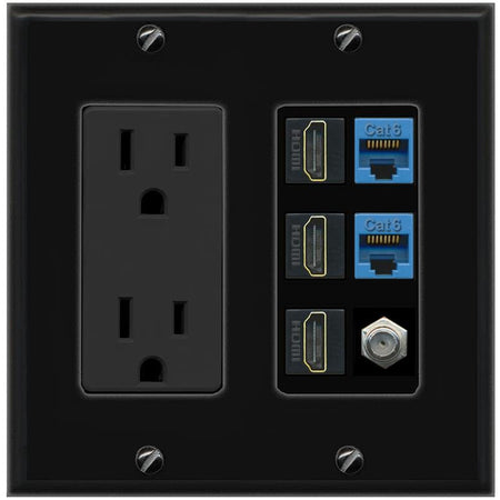 RiteAV 3 HDMI Wall Plate 2 Cat6 1 Coax - Outlet [Black/Black]