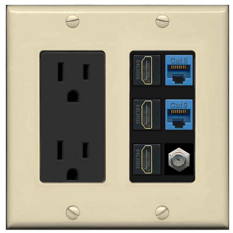 RiteAV 3 HDMI Wall Plate 2 Cat6 1 Coax - Outlet [Ivory/Black]
