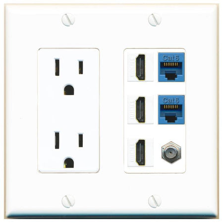 RiteAV 3 HDMI Wall Plate 2 Cat6 1 Coax - Outlet [White/White]