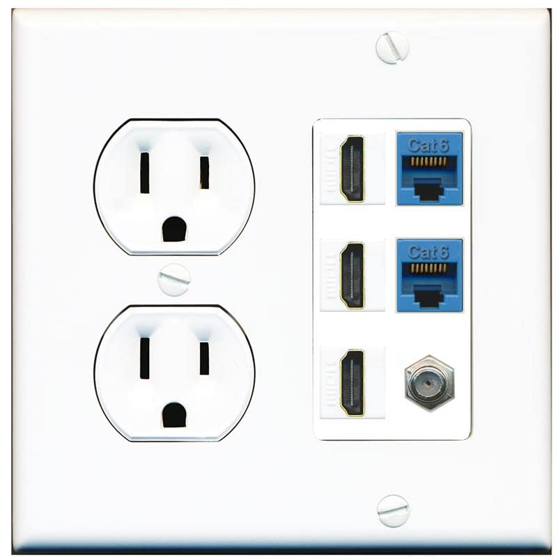 RiteAV 3 HDMI Wall Plate 2 Cat6 1 Coax - Round Outlet [White/White]