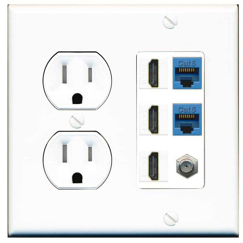RiteAV 3 HDMI Wall Plate 2 Cat6 1 Coax - Tamper Res Round [White/White]