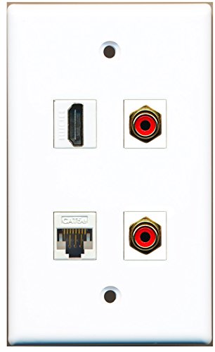 RiteAV - 1 Port HDMI 2 Port RCA Red 1 Port Cat5e Ethernet White Wall Plate
