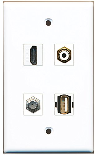 RiteAV - 1 Port HDMI 1 Port RCA White 1 Port Coax Cable TV- F-Type 1 Port USB A-A F/F Wall Plate