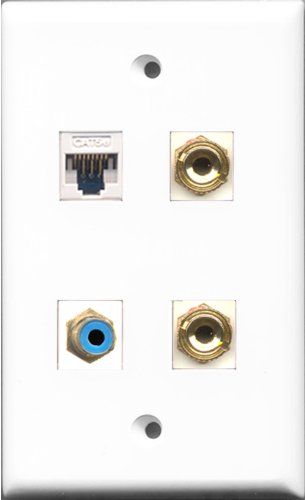 RiteAV - 1 Port RCA Blue and 1 Port Cat5e Ethernet White 2 Port Banana Speaker Wall Plate