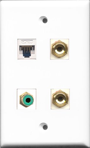 RiteAV - 1 Port RCA Green and 1 Port Cat5e Ethernet White 2 Port Banana Speaker Wall Plate