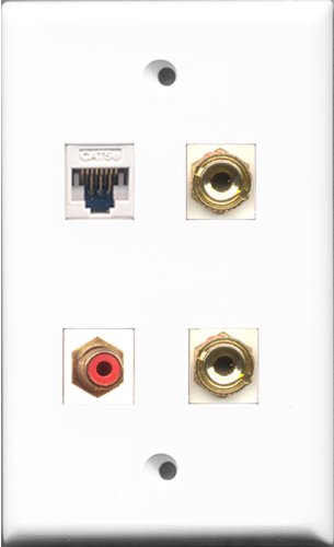 RiteAV - 1 Port RCA Red and 1 Port Cat5e Ethernet White 2 Port Banana Speaker Wall Plate