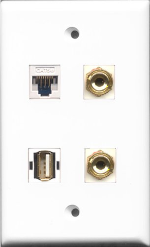 RiteAV - 1 Port USB A-A and 1 Port Cat5e Ethernet White 2 Port Banana Speaker Wall Plate