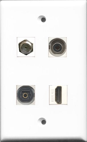 RiteAV 1 Port HDMI and 1 Port Coax Cable TV- F-Type and 1 Port Toslink and 1 Port 3.5mm Wall Plate