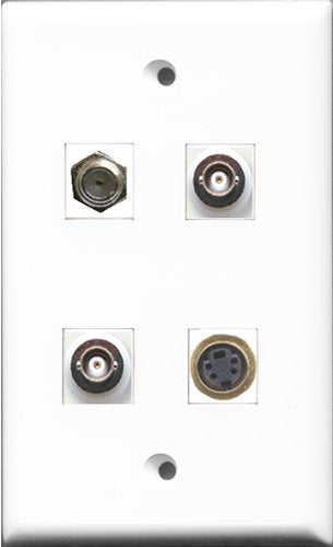RiteAV 1 Port Coax Cable TV- F-Type and 1 Port S-Video 2 Port BNC Wall Plate