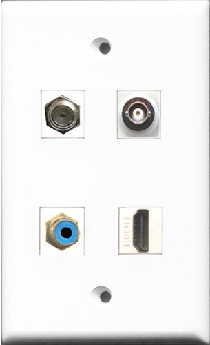 RiteAV - and 1 Port HDMI and 1 Port RCA Blue and 1 Port Coax Cable TV- F-Type and 1 Port BNC Wall Plate