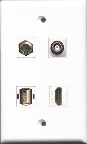 RiteAV 1 Port HDMI and 1 Port Coax Cable TV- F-Type and 1 Port USB A-A and 1 Port BNC Wall Plate