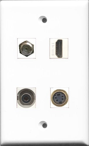 RiteAV 1 Port HDMI and 1 Port Coax Cable TV- F-Type and 1 Port S-Video and 1 Port 3.5mm Wall Plate