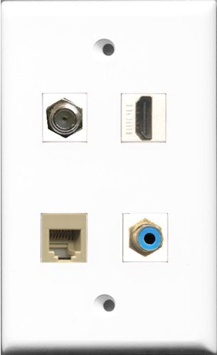 RiteAV - and 1 Port HDMI and 1 Port RCA Blue and 1 Port Coax Cable TV- F-Type and 1 Port Phone RJ11 RJ12 Beige Wall Plate