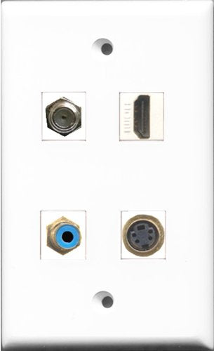 RiteAV 1 Port HDMI and 1 Port RCA Blue and 1 Port Coax Cable TV- F-Type and 1 Port S-Video Wall Plate