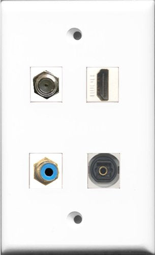 RiteAV 1 Port HDMI and 1 Port RCA Blue and 1 Port Coax Cable TV- F-Type and 1 Port Toslink Wall Plate