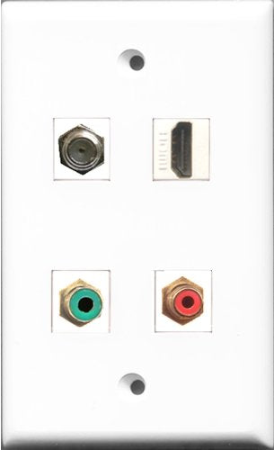 RiteAV 1 Port HDMI and 1 Port RCA Red and 1 Port RCA Green and 1 Port Coax Cable TV- F-Type Wall Plate