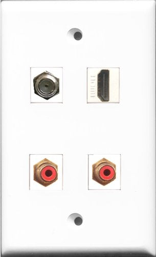 RiteAV 1 Port HDMI 2 Port RCA Red and 1 Port Coax Cable TV- F-Type Wall Plate