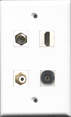 RiteAV 1 Port HDMI and 1 Port RCA White and 1 Port Coax Cable TV- F-Type and 1 Port Toslink Wall Plate