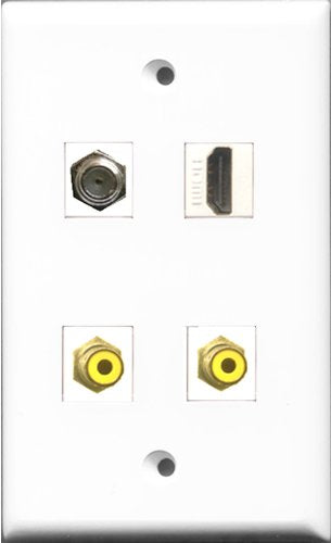 RiteAV 1 Port HDMI 2 Port RCA Yellow and 1 Port Coax Cable TV- F-Type Wall Plate
