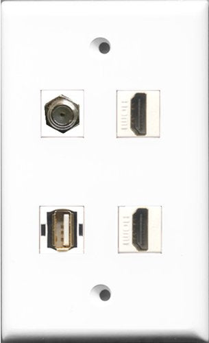 RiteAV - 2 Port HDMI and 1 Port Coax Cable TV- F-Type and 1 Port USB A-A Wall Plate