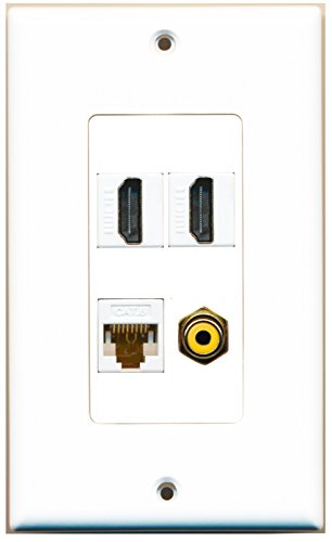 RiteAV 2 Port HDMI 1 Port RCA Yellow 1 Port Cat6 Ethernet White Wall Plate OVERSIZED