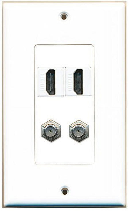 RiteAV - 2 Port HDMI 2 Port Coax Cable TV- F-Type Decorative Wall Plate