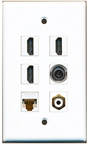 RiteAV - 3 HDMI 1 Port RCA White 1 Port 3.5mm 1 Port Cat6 Ethernet White Wall Plate