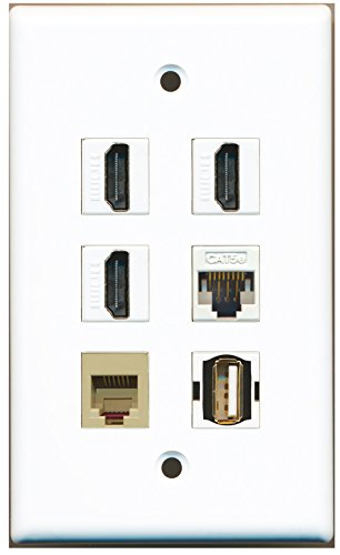 RiteAV - 3 HDMI 1 Port USB A-A F/F 1 Port Phone RJ11 RJ12 Beige 1 Port Cat5e Ethernet White Wall Plate