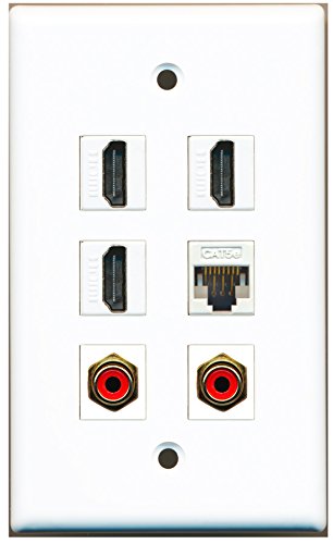 RiteAV - 3 HDMI 2 Port RCA Red 1 Port Cat5e Ethernet White Wall Plate