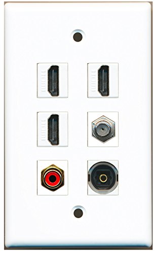 RiteAV - 3 HDMI 1 Port RCA Red 1 Port Coax Cable TV- F-Type 1 Port Toslink Wall Plate