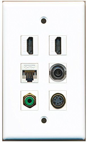 RiteAV - 2 HDMI 1 Port RCA Green 1 Port S-Video 1 Port 3.5mm 1 Port Cat5e Ethernet White Wall Plate