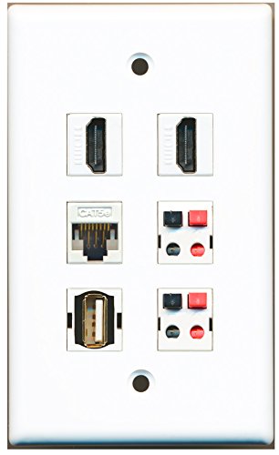 RiteAV - 2 HDMI 1 Port USB A-A F/F 1 Port Cat5e Ethernet White 2 Port Speaker Wall Plate