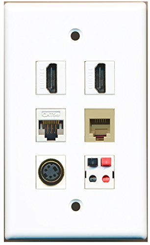 RiteAV - 2 HDMI 1 Port Phone RJ11 RJ12 Beige 1 Port S-Video 1 Port Cat5e Ethernet White 1 Port Speaker Wall Plate