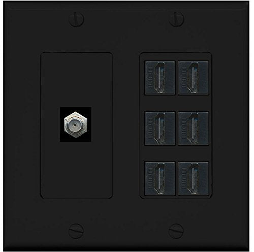 RiteAV - (2 Gang Decorative 6 HDMI Black Coax Black Wall Plate Black