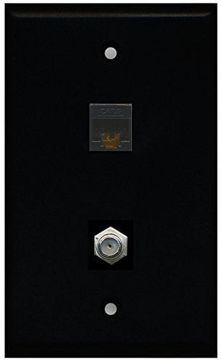 RiteAV - Black 1 Port Coax Cable TV- F-Type 1 Port Cat6 Ethernet Black Wall Plate