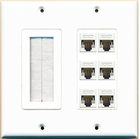 RiteAV (2 Gang Decorative Mesh-Brush 6 Cat5e White Wall Plate White