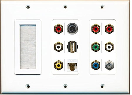 RiteAV (3 Gang Mesh-Brush Coax Cat6 Component Video Composite 3.5mm USB Wall Plate