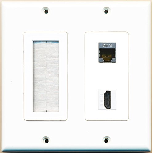 RiteAV (2 Gang Decorative Mesh-Brush HDMI Shielded Cat6 Wall Plate White