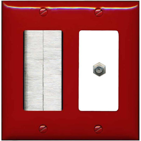 RiteAV 1 Port Coax Cable TV F-Type Wall Plate - Brush [Red/White]